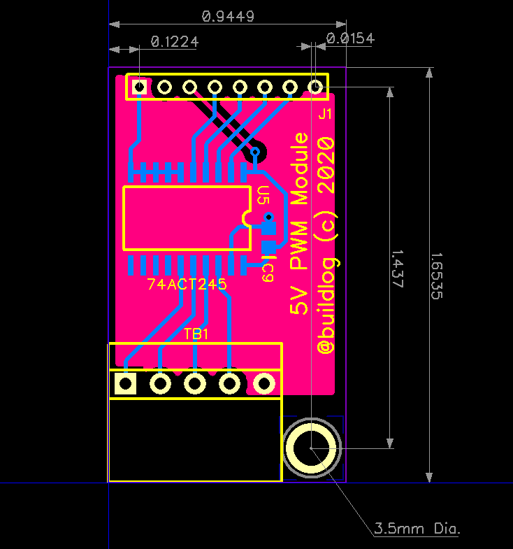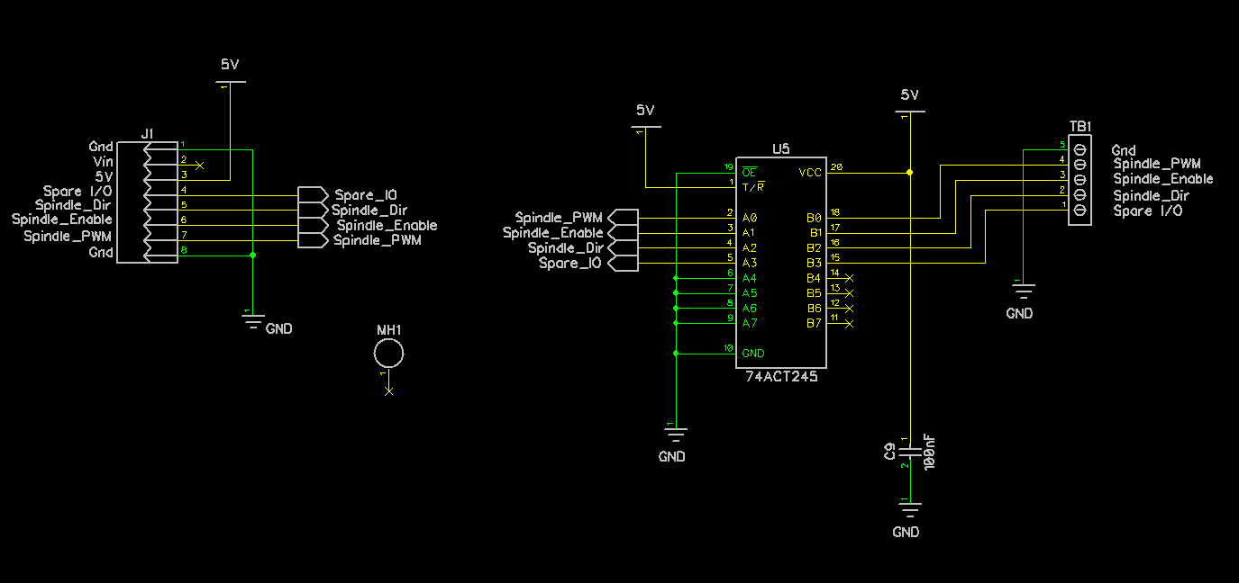这是一个建议的 PWM 模块。它使用 74ACT245 提供 3.3V 至 5V。这可用于任何需要 5V PWM 的主轴或激光器。它还具有启用和方向信号。