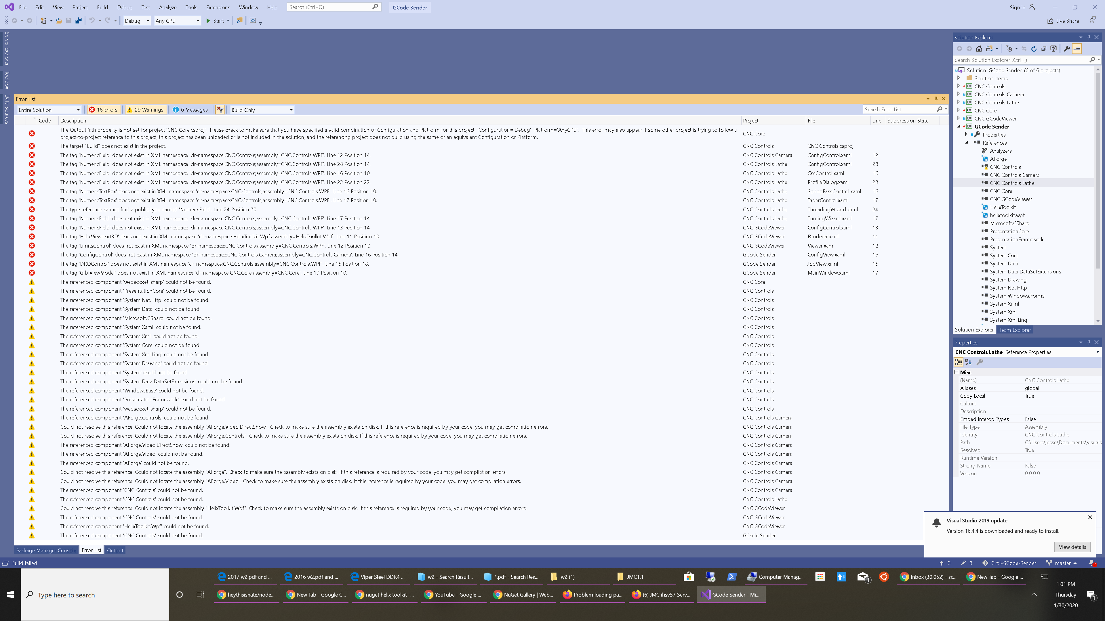 关闭 jschoch 打开了这个问题 2020 年 1 月 31 日 · 4条评论 关闭 visual studio (2019) 新手楼#8 jschoch 打开了这个问题 2020 年 1 月 31 日 · 4条评论 评论 jschoch 评论了 2020 年 1 月 31 日 好吧,我安装了 VS,我的电脑蓝屏了一个星期。我认为它终于通过一些 ram 设置稳定下来了。 我尝试构建该项目,我对 VS 和 C# 的新鲜感很明显。我将尝试阅读一些有关 C# 的教程。您可能构建的任何提示都会有所帮助。 这是错误: 作者 jschoch 评论了 2020 年 1 月 31 日 我忘了在 VS19 和我尝试让 VS Code 工作之间做一个干净的拉动。 此外,您似乎还必须为每个依赖项安装包,而不仅仅是在主项目中。 现在正在努力解决这些问题。 jschoch 更改了标题 在 VS 2019 中构建 visual studio (2019) 新手楼 2020 年 1 月 31 日 作者 jschoch 评论了 2020 年 1 月 31 日 删除“CNC Core/obj”目录似乎已经消除了构建核心的问题。 作者 jschoch 评论了 2020 年 1 月 31 日 我必须删除所有依赖项的 obj 目录,然后它就建立了!!! 我现在就关闭它。 jschoch已完成 关闭 2020 年 1 月 31 日 喜欢 (0) 停止并保持问题并首先在实际机器上实时运行 #7 合作 #9 v1.3.8-EDGE 重启后键盘快捷键消失 #427 关闭 无法在 gsender 1.2.0 中打开 .gcode 文件 #367 RaspberryPi 运行 gsender 时出现问题 #89 向 fluidnc 发送 $$ 会导致 gsender 崩溃 #473 v1.3.8-EDGE 重启后键盘快捷键消失 #427 关闭无法在 gsender 1.2.0 中打开 .gcode 文件 #367RaspberryPi 运行 gsender 时出现问题 #89向 fluidnc 发送 $$ 会导致 gsender 崩溃 #473功能请求:抑制发送到机器的 gcode 中的 gcode 注释。 #444 关闭通过网络连接进行连接 #171操纵杆运动的剩余问题 #204 关闭新版本认为我的机器一直处于锁定状态 #474 关闭