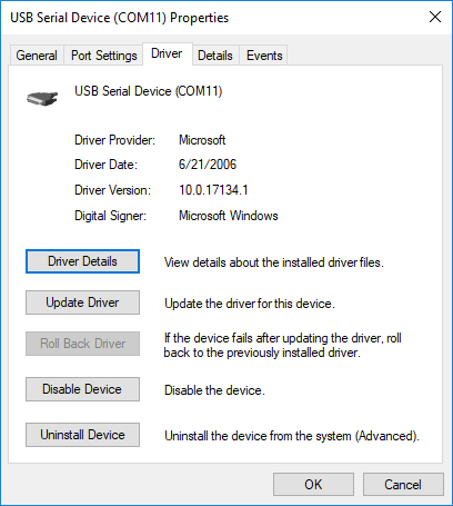 切换 DTR 两次似乎已经解决了 Win10 上 Windows 驱动程序的问题。 我刚刚在我的 Win10 机器上开始了一项 10-12 小时的工作,我将整夜运行它以查看是否可以重现您的通信故障。 太糟糕了,你炸了你的孩子——你这样做的同时也试图连接 UART <> 串行突破? |