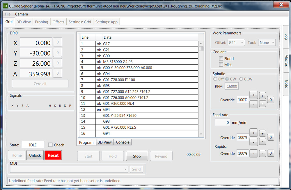 测试你的 GCode-Sender 和 GRBLHAL,我很热情,尽管处于 alpha 状态,但工作得很好。我来自 GRBLPanel,我正在寻找一个也可以显示我的 a 轴的站。