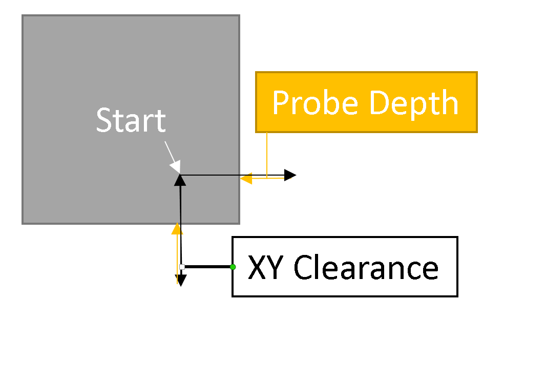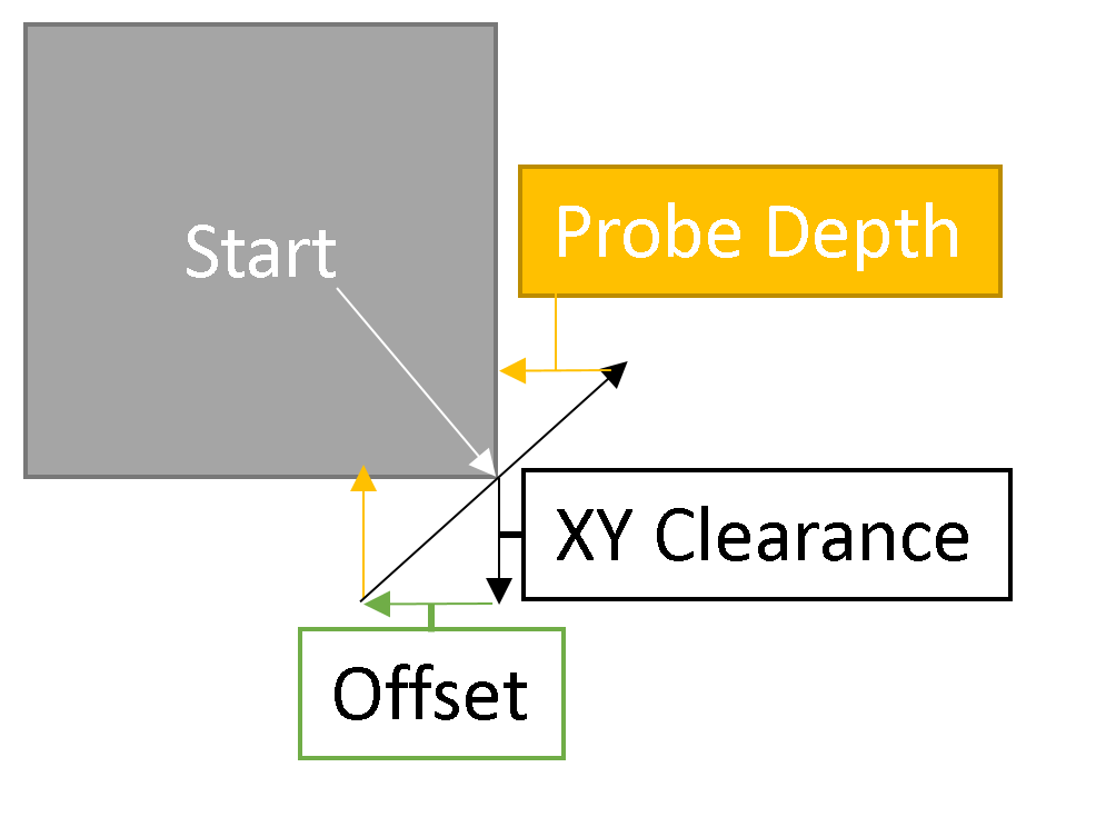 上面的第一张图不正确,发件人的图形也具有误导性。拐角探测将首先是从拐角偏移沿边缘移动,然后是远离它的XY 间隙,然后是向下深度,然后向上移动到朝向边缘的探测距离。在成功探测序列后,从边缘移回XY 间隙,然后回到初始 Z 位置, XY 间隙朝向边缘,然后沿对角线穿过拐角到相对边缘沿该边缘偏移。ETC… 编辑:错过了一步,有点累…… |