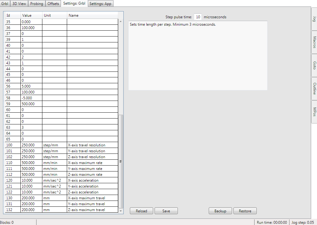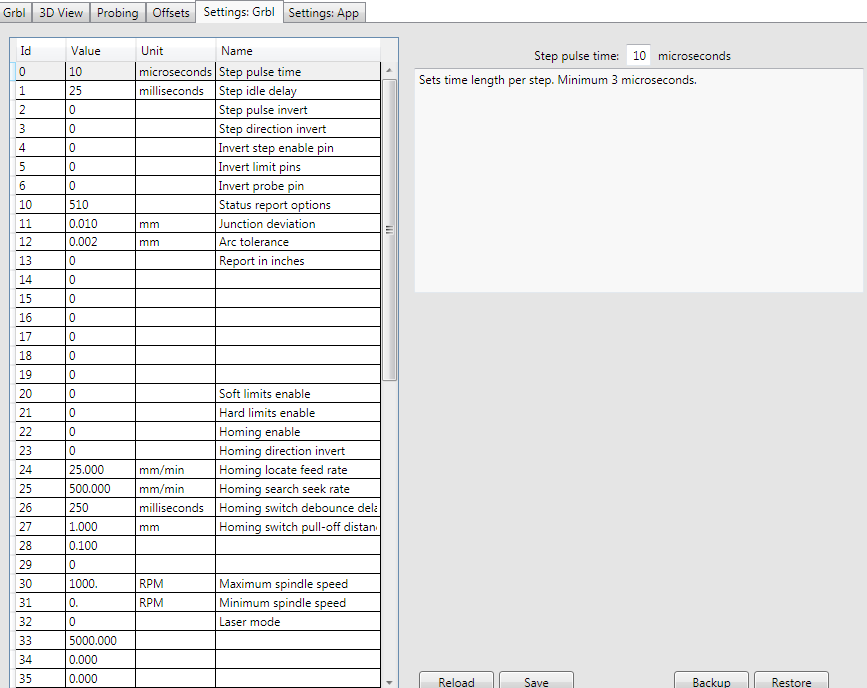 设置:Grbl 选项卡没有显示为分组设置,而是以原始形式显示,