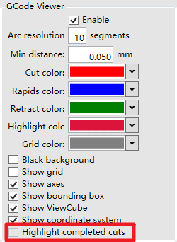 我假设你的意思是急流 (G0) 运动。我会考虑,现在将急流颜色设置为等于背景颜色。 [编辑] 忘了提到 Vectric 工具支持“直接输出到机器”,这也可以添加到开源工具中吗?这很简单,gcode 被保存到一个文件中,文件名通过命名管道发送到 ioSender 。如果 ioSender 没有运行,它甚至可以由 CAM 工具启动。 |