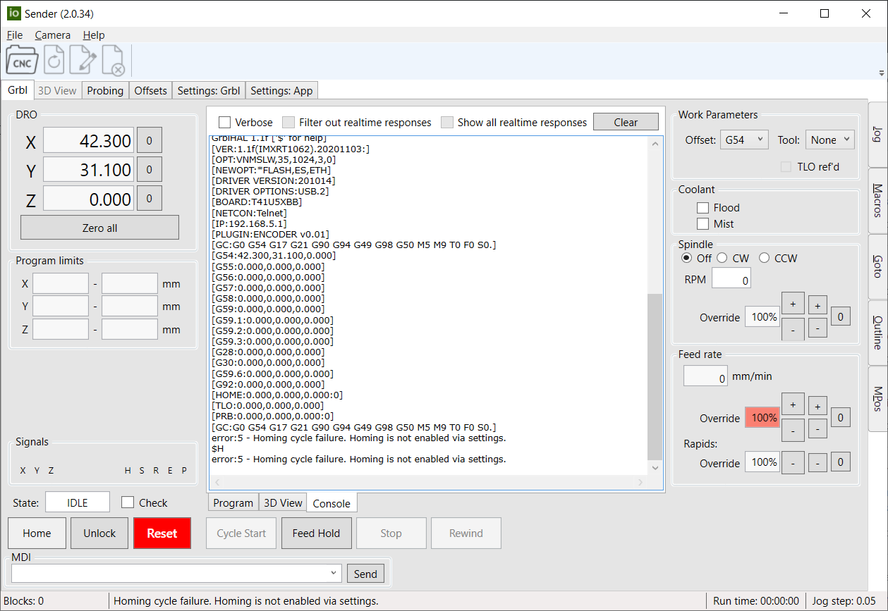 我正在尝试基于 Grbl-hal Teensy 板启动我的 cnc,并在尝试家用机器时出错。