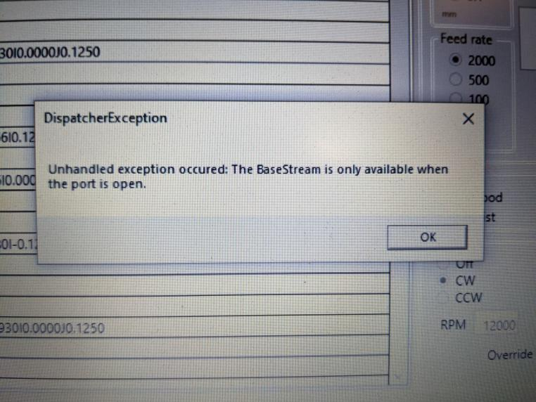 我们将 ioSender 与 Grbl“经典”(1.1h,Arduino Mega)一起使用,并在 Arduino Mega 崩溃时收到一系列“未处理的异常”错误消息。然后我们必须进入任务管理器并关闭 ioSender。Windows 10,不确定什么更新级别。这是一个例子。