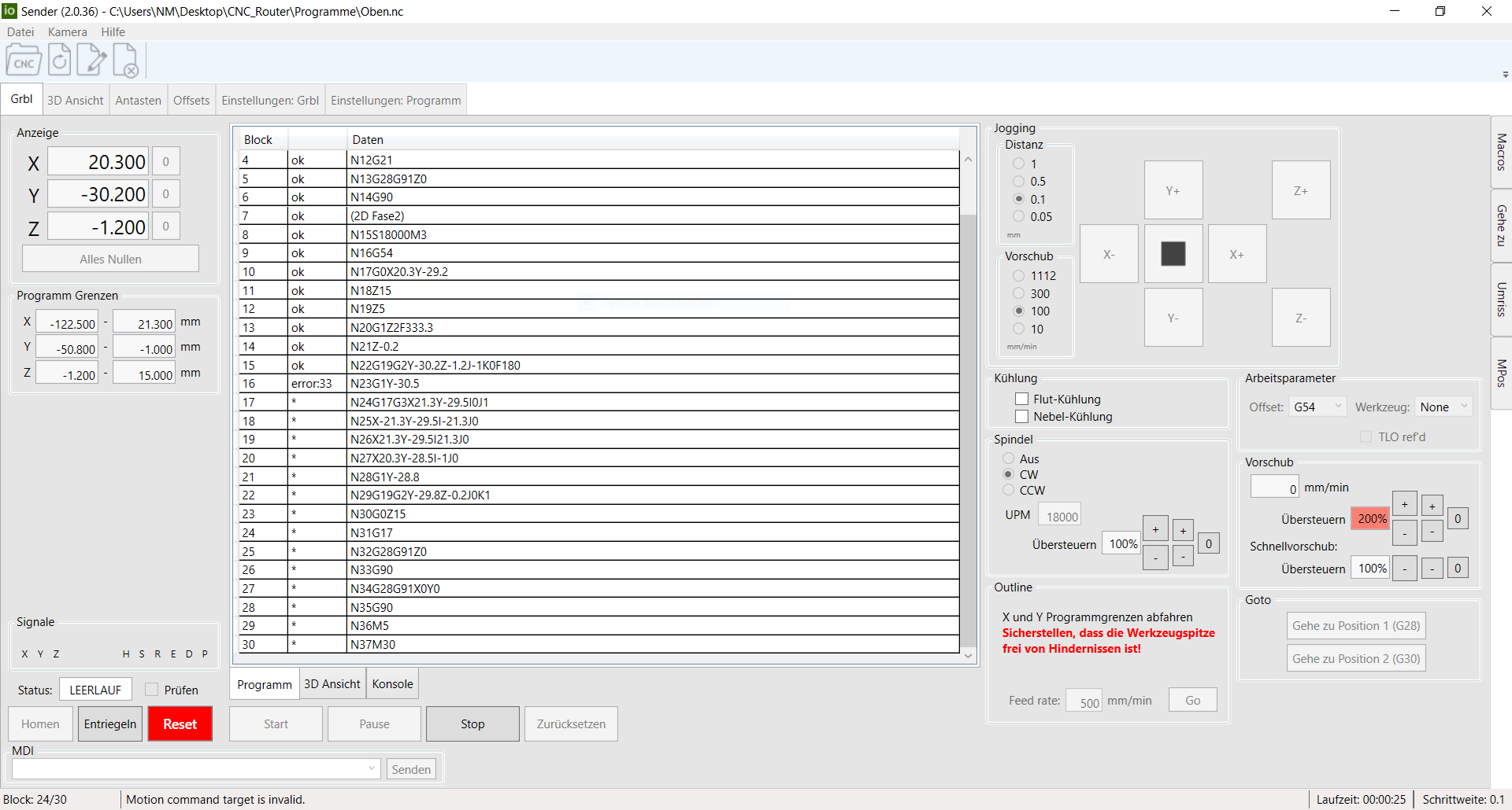 通过改变最小的东西,比如半径或距离,gcode 文件有时可以工作,有时却不能。错误中标记的行与上方或下方的其他行没有区别。