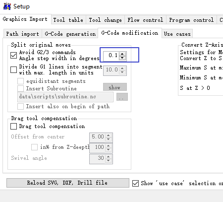 非常感谢您的回答。 我在测试dxf样条曲线细分精度的时候,我把下面方框里的数字改成4就好像什么都没变一样,数字会自动变成12,点应用按钮就不行了。我把椭圆细分相关的方框里的数字改成0.1,软件也没有变化。这些参数无效吗? GRBL绘图仪软件样条曲线和椭圆细分小线段G01,与dxf2gcode相比,软件的做法是将样条曲线转为G02 G03 G01,椭圆转为G02 G03。感觉dxf2gcode软件的方法转成圆弧可以最大程度的贴合曲线原来的形状。这只是我个人的看法,也许GRBL绘图仪软件还有其他的考虑。另外,同一个dxf文件dxf2gcode软件生成的gcode行数是GRBL绘图仪软件生成的两倍多。按照道理,gcode行数越多,曲线越细。 |
