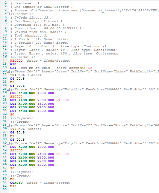 我将 DXF 图层与工具相匹配,以便 grbl 绘图仪将自动检测工具更改并使用正确的工具并发送 M7-M9 命令。#162
