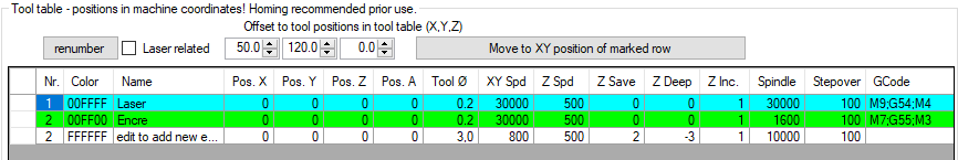 当我点击“移动到位置..”时,它想将工具 1 移动到 50;120,将工具 2 移动到 50+table_offset;120+table_offset。所以它似乎应用了一个基本偏移量加上表中的值,但实际上它们似乎都没有偏移量。