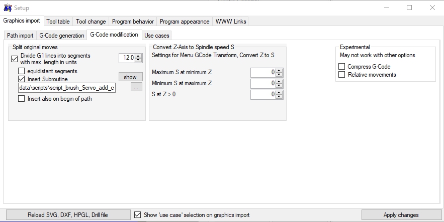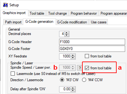 非常感谢您的建议! 我发现了一些其他奇怪的事情,如果我在工具表中将主轴速度设置为 0,它无论如何都会将 500 写入 gcode,并在工具表中标记为 goit(我的工具表中没有 500)但是当在“主轴速度/激光功率”中覆盖它时。它将创建一个具有指定编号的 gcode,一切都很好。可能只是一个 0 使它成为现实。 |