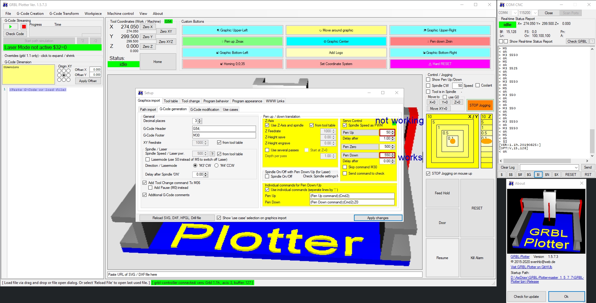 你好。是否有一些解释说明即使在参数更改时,起笔也始终以相同的速度工作?它可以以某种方式在 GRBL 的其他地方被覆盖还是 ib 是一个错误?落笔工作正常并随参数变化。
