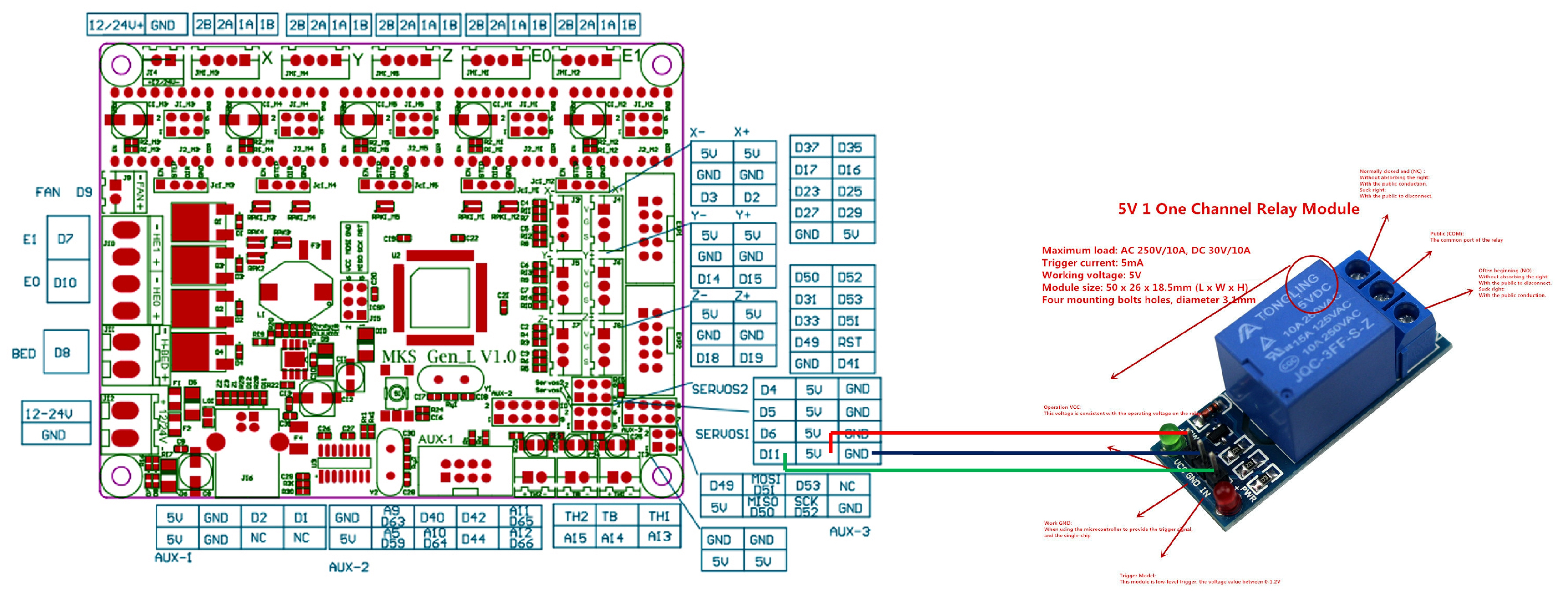 嗨,我开始这个问题是因为我无法让我的 PWC 工作,遇到了与您提到的相同的问题。有我之前写的连接并按照手册做的一切,甚至在互联网上到处看(也看到了一些俄罗斯帖子),毕竟我的 pwc 仍然没有工作! 将我的 Sbase 更改为 Gen v1.4,因为我想使用不同的驱动程序。在这种使用 marlin 的情况下,我确信 PWC 在阅读问题#59后可以正常工作,但我的 PWC 没有正常工作。 不知道模块是否有问题或什么,但我会向您展示一个替代方案,这就是我目前在我的 3D 打印机上使用的:Arduino 模块继电器。这个模块很容易连接,从我第一次尝试就开始工作了。 我知道这不是使您的 PWC 工作的解决方案,但我真诚地放弃了此模块的工作并且没有关于它的更多信息。我将为您提供有关我使用的 Arduino 继电器模块的连接信息:http: |