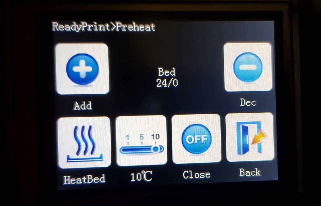 我需要预热菜单中的床预热功能,我还想在调平菜单中进行手动 + 自动床调平。