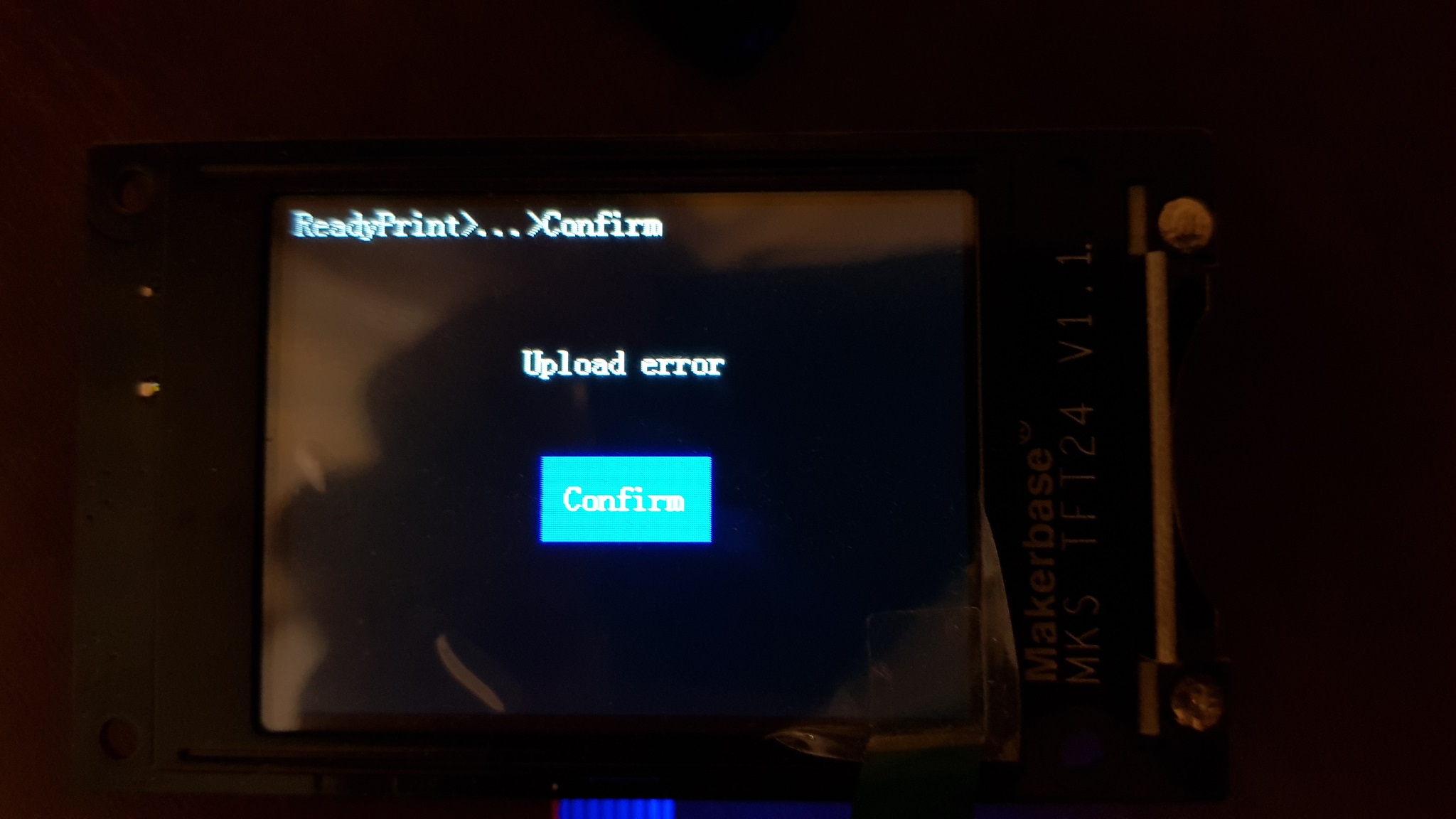 您好,我购买了带有 TFT24 和 wifi 模块 MKS TFT-WIFI ESP8266 的 MKS Gen L v1.0。我为 Cura 3.6 下载了最新的 V3.0.3 固件和插件 3.5。打印机已通过 wifi 模块正确连接。我可以设置床和挤出机温度。但是当我尝试打印模型时出现错误: